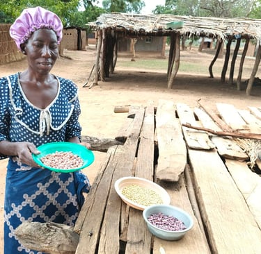 Instead, she embraced diversity by growing a mix of hybrid maize, local maize, soya, and groundnuts. Bambara groundnut holds a special place in her farming system. Elina carefully saves these seeds each season and praises the crop for its strong tolerance to dry spells. By diversifying her crops, she has built a reliable "safety net" for her household.