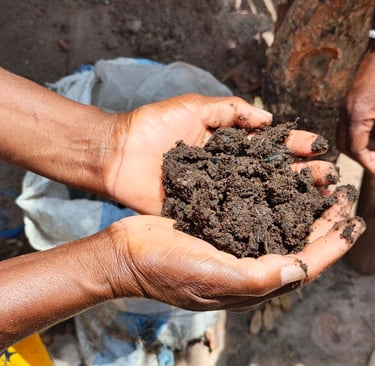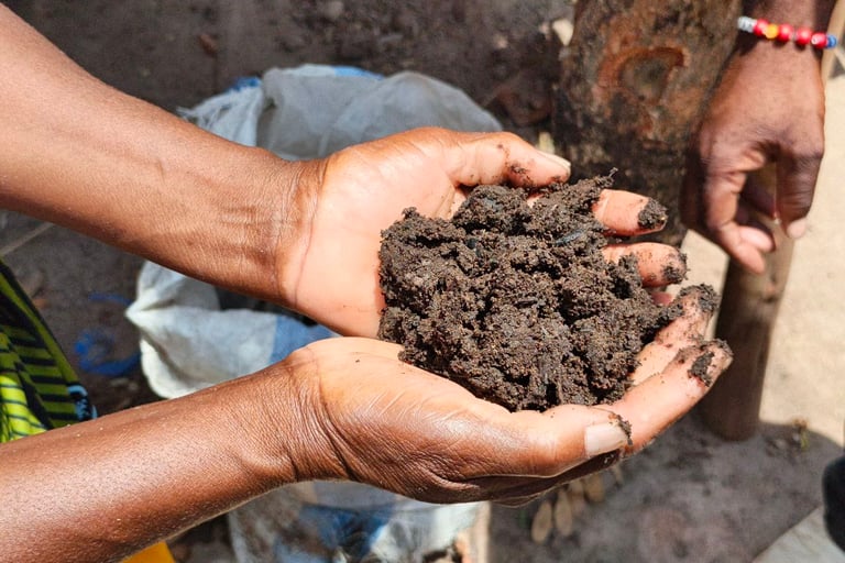 A sample of Mbeya manure—a locally blended organic mix helping farmers improve soil health and withstand dry spells. © Mikaïla Issa, NORCAP